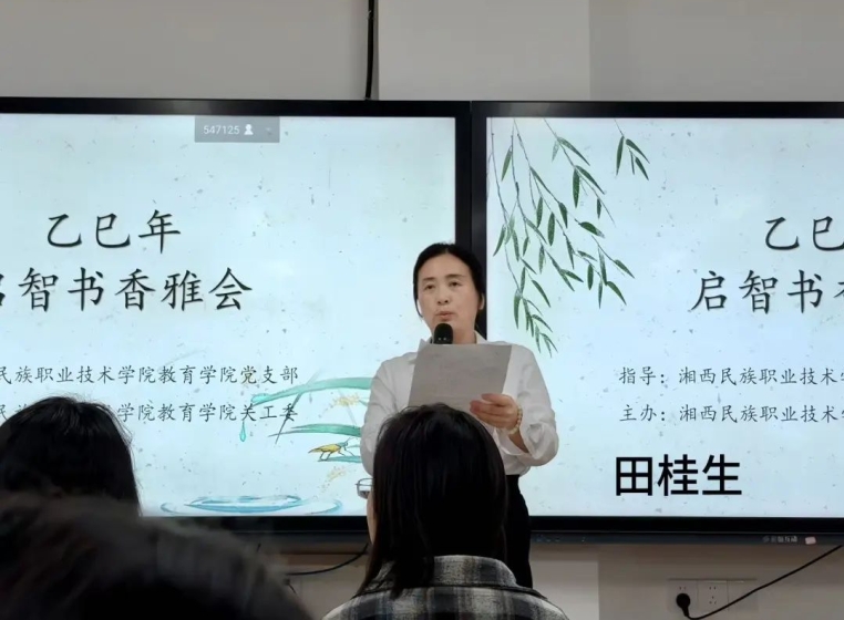 为深入贯彻落实党的二十大精神,深化教育学院“党建+五育护苗”育人理念,2025年4月23日,由湘西民族职业技术学院教育学院党支部指导、教育学院关工委承办、教育学院团学会协办的我院第二届世界读书日活动—“乙巳年·启智书香雅会”在艺术楼103室圆满落幕。