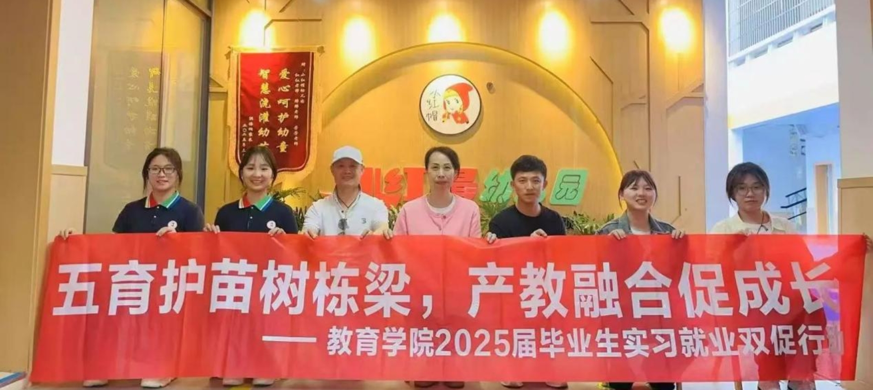 为了掌握教育学院2025届毕业生在实习单位工作、学习、生活情况;加强与校企合作企业沟通交流;了解学生就业需求,扎实推进就业工作。2025年5月27日——30日,教育学院开展了“五育护苗树栋梁 产教融合促成长——教育学院2025届毕业生实习就业双促行动”。王树龙、夏生龙两位老师对在长株潭地区实习的应届毕业生进行了回访活动。